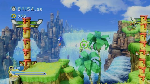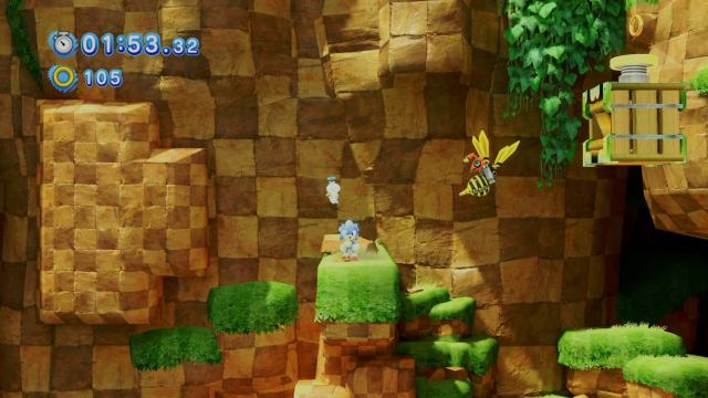 大きな赤い魚を逃れた後、ソニックはレベルのサイドスクロールセクションに入ります。終わり近くに、あなたがヒットすることができる2人の蜂の敵に出くわし、プラットフォームをより速くアップすることができます。
