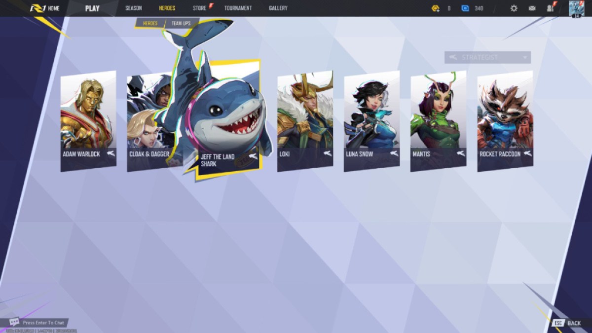 | ジェフ・ザ・ランド・サメ | Venom、Hulk、Peni Parker | ブラックパンサー、マギック、パニッシャー、スパイダーマン、アイアンマン | マントとダガー、ロキ | ジェフ・ザ・ランド・サメは、主に彼のチームメイトが彼を守るためにできる限りのことをするでしょう。ウルヴァリンのような格闘中のデュエリストは彼の迅速な仕事をすることができ、マントとダガーの暗いテレポーテーションは彼の究極の役に立たないものにすることができます。 |