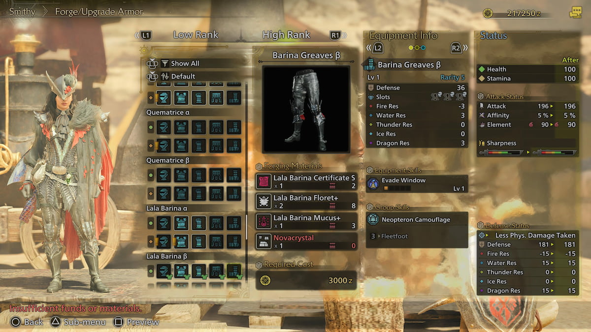 | BarinaVambracesβ | x1 lala barina認定s x1 lala banda claw X1 Lala Barina Stinger+ x1モンスタースープ | 3,000 Z |