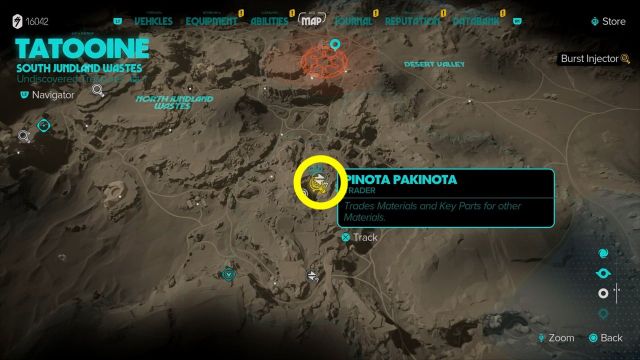 ちょうど西に、次のジャワトレーダーの場所を見つけてください。この男はentipと名付けられていますMos Eisleyの西に待っています。スピーダーに向かい、5つのジャワの3分の1と話をしたら、スターウォーズの無法者で次の2つに向けて準備が整います。
