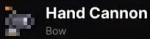 ハンドキャノン 弓 | 発射速度: 1/秒 ショット:1 範囲: 8タイル ダメージ: 40-50 装備時: +5 バイタリティ、+3 スピード | |