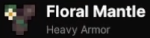 フローラルマント 重装甲 | +5 活力 +9 防御力 +20 体力 +60マナ | |