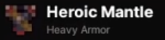 英雄的なマント 重装甲 | +9 防御力 +50 体力 +8 活力 | |