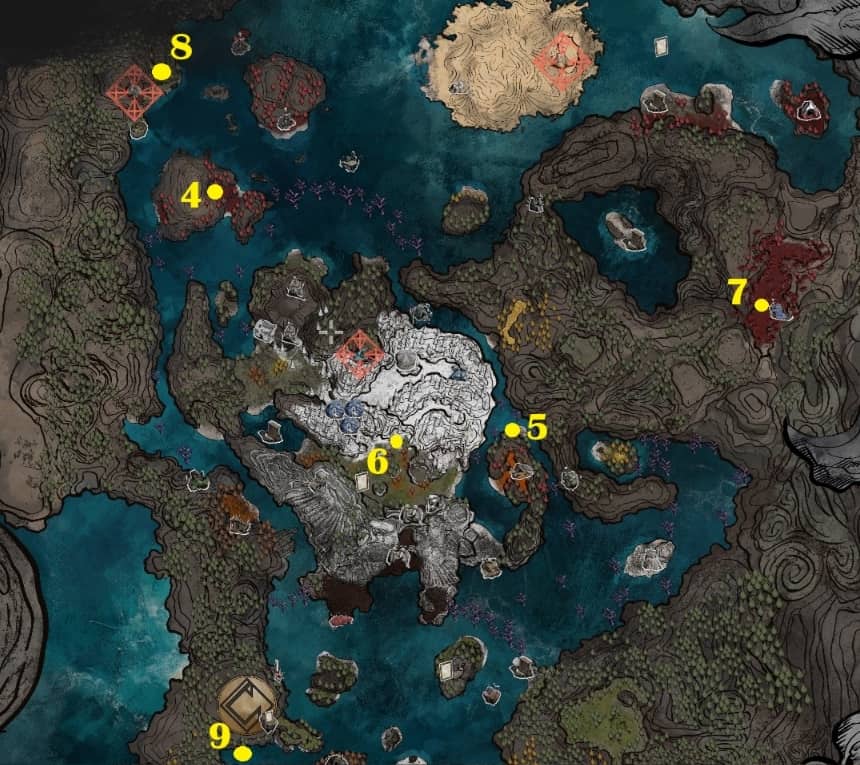 以下にマップの場所と説明で見つかった残りの失われたゲストラルは、ゲームを進め、エスクイの泳ぎ、飛行、ダイビングの能力のロックを解除する際に順番に見つけることができます。