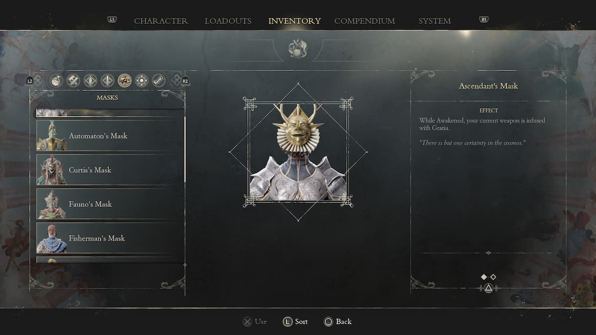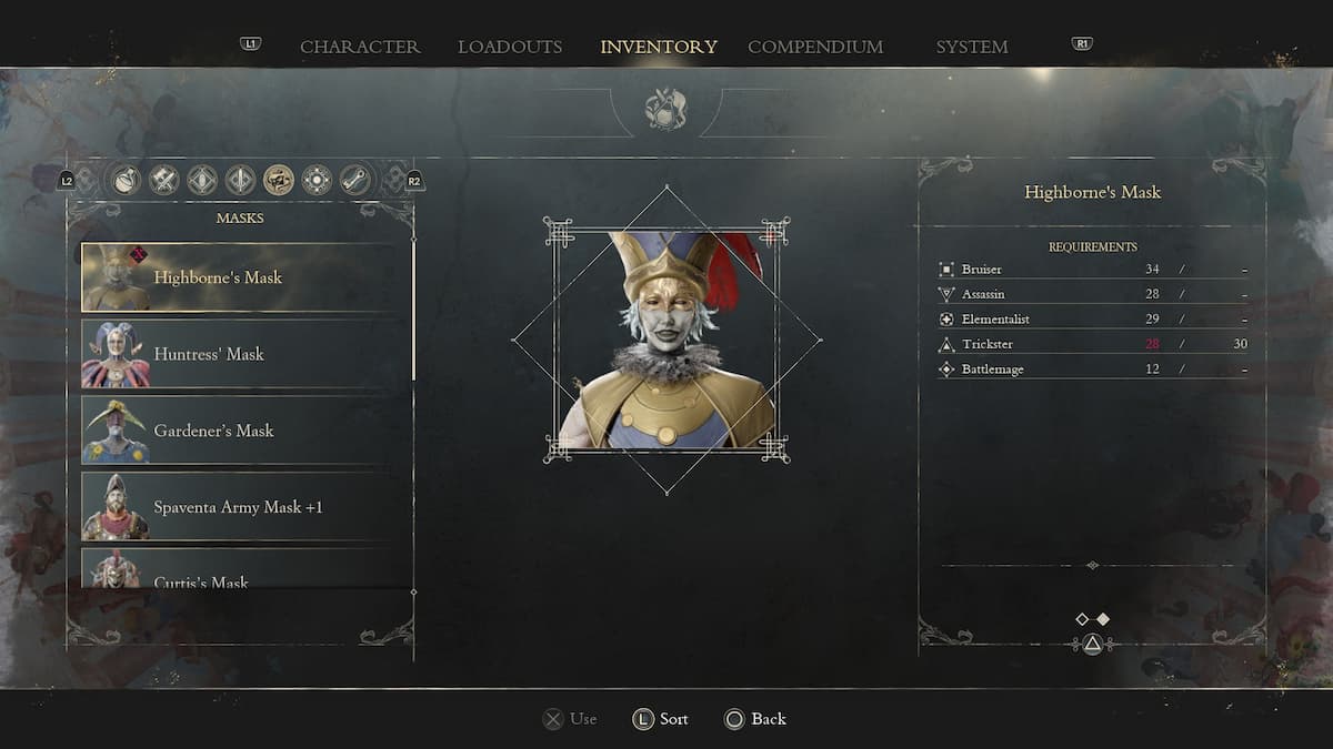 - Highborne's Mask:あなたはより多くのメモリアを獲得し、あなたの運は増加します。