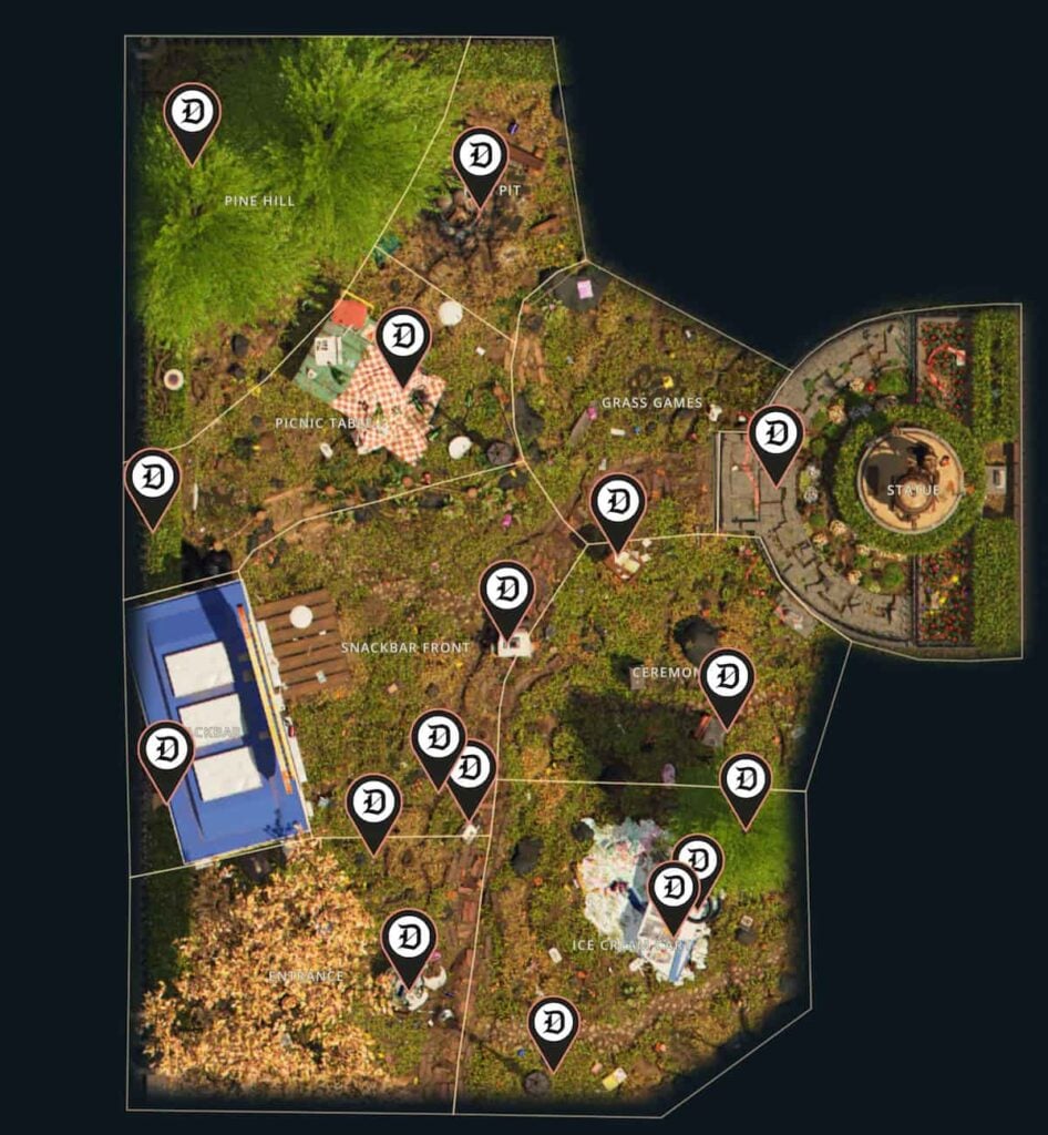 | 19 | アイスクリームカート | こちらのトンネルの入り口に行き、カートのすぐ下に直接見つける必要があります。 |