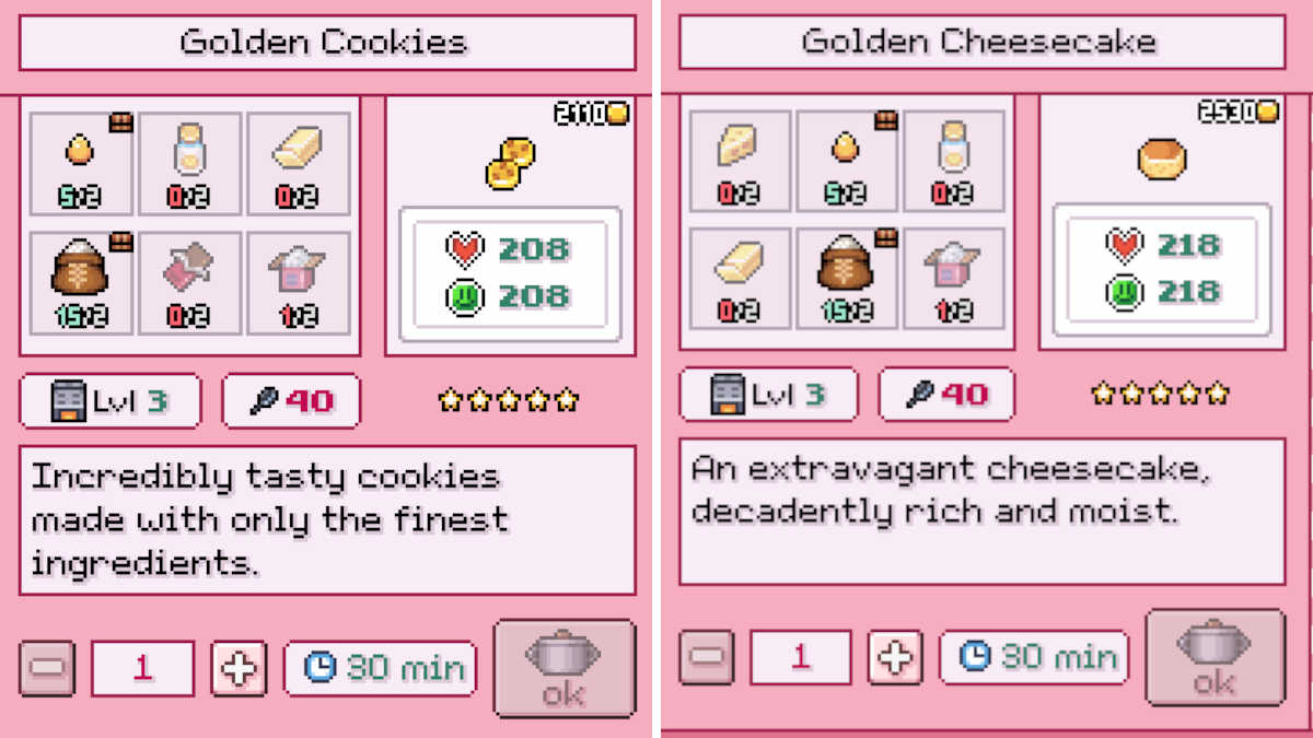 金色の材料は、友情レベルの高い動物から得られるので、牧場のスキルに取り組む必要があります。これらのレシピの両方について、レベル40の料理とティア3キッチンが必要です。