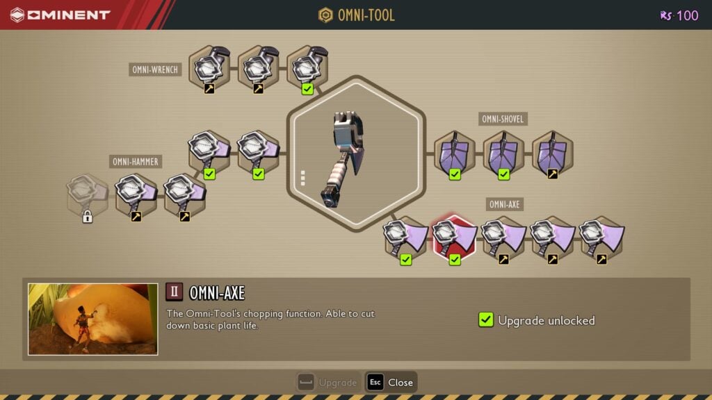 レンジャーの前post基地であるスナックバーでボードからオムニツールを手に入れると、Axeアップグレードを無料で取得します。しかし、他の機能(ハンマー、シャベル、レンチ)は、個別に購入することに不満を抱いています。すべてのロックを解除したら、生の科学やその他のリソースを使用して、それぞれをさらにアップグレードして力を高めることができます。
