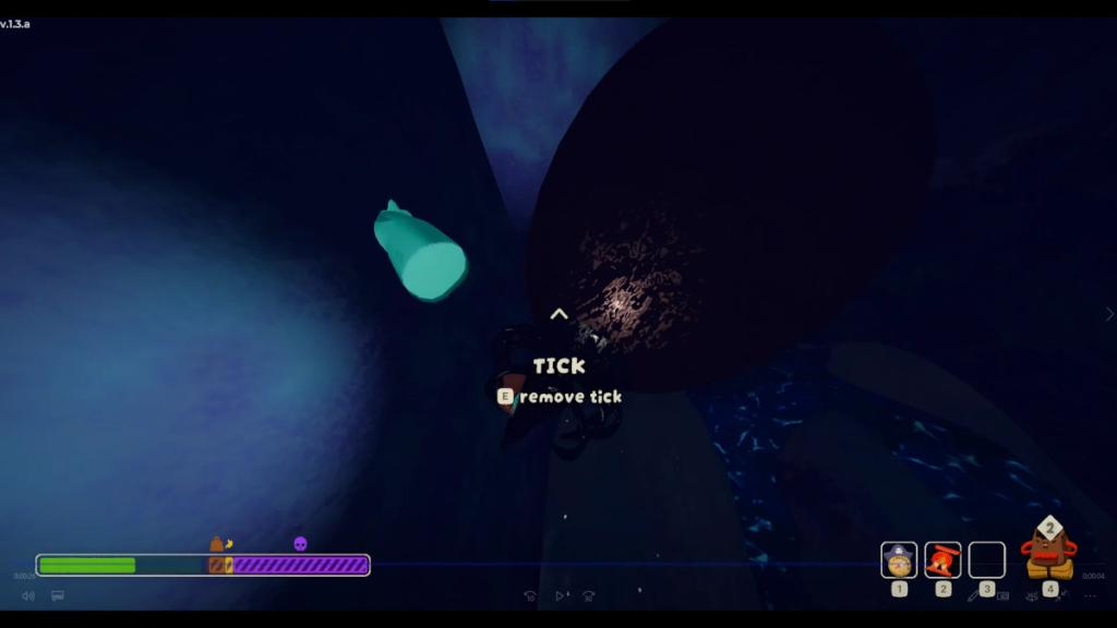 ダニは足の奥深くに穴を掘ることができ、彼らはあなたの血を吸い続け、最終的に毒の束を追加します。あなたがソロであれば、毒スタックが適用されるまでそれに気付くことはありません。次に、しゃがみ、足からダニを取り除きます。あなたがグループで遊んでいるなら、あなたの友人が昆虫に気づく可能性があります。じっと立って、彼らにあなたからティックを取り除かせてください。または、友人の害虫に気付いた場合も同じことをしてください。
