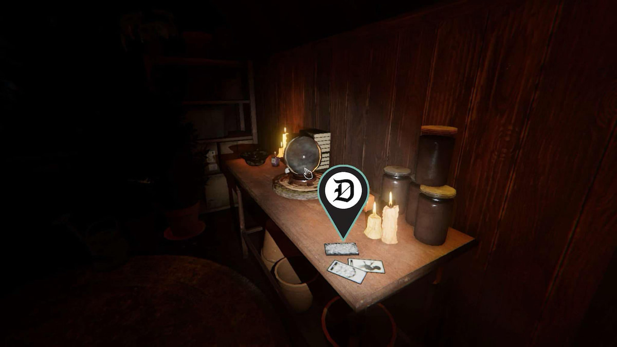 屋根裏部屋にいたら、すべての乱雑さを織り込み、部屋をまっすぐ歩きます。最後にビーズのカーテンがあります。このカーテンを通り抜けて魔女のようなベッドルームに入り、右折して円形の窓でエリアまで歩いて、タロットテーブルに座っているタロットカードを見つけます。