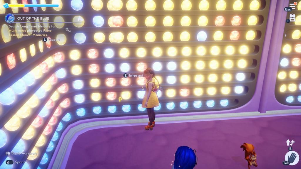 ディズニードリームライトバレーでは、喜びを解き放ち、感情的な救助クエストを通じて前進した後、あなたは青から始めて、初めて悲しみに会います。彼女は、ライリーのピアノレッスンの思い出を探しているが、それらを思い出に変えたくないことを明らかにします。