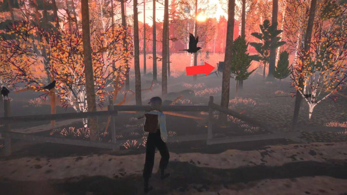 前と同じ道をたどるのではなく、左に曲がって右にフェンスを跳ね返す代わりに、古い井戸が見つかります。それと対話してバケツを引き上げてから、さらにグッズをつかみます。