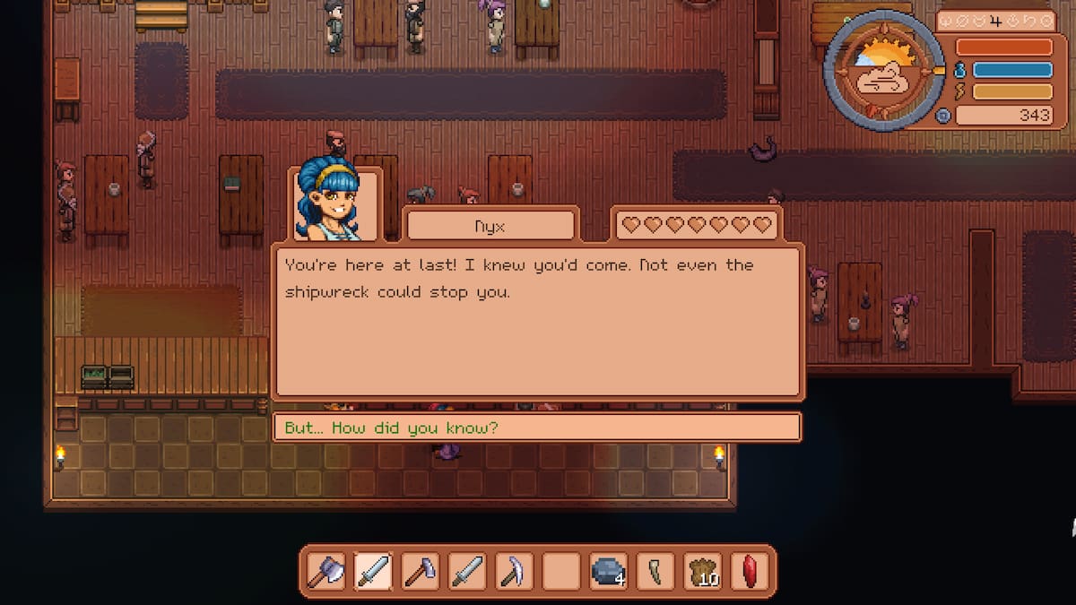 Scytheを探索している場合、青い髪のNYXが所有している傑出したカボチャの家を見逃すのは難しくありません。多くのキャラクターと同様に、彼女は魔法の能力のコツを持っているようで、この海賊が運営する町への到着を予測しています。 Nyxの家は別として、料理局やダンスフロアの近くの地元の居酒屋で彼女と話すことができます。