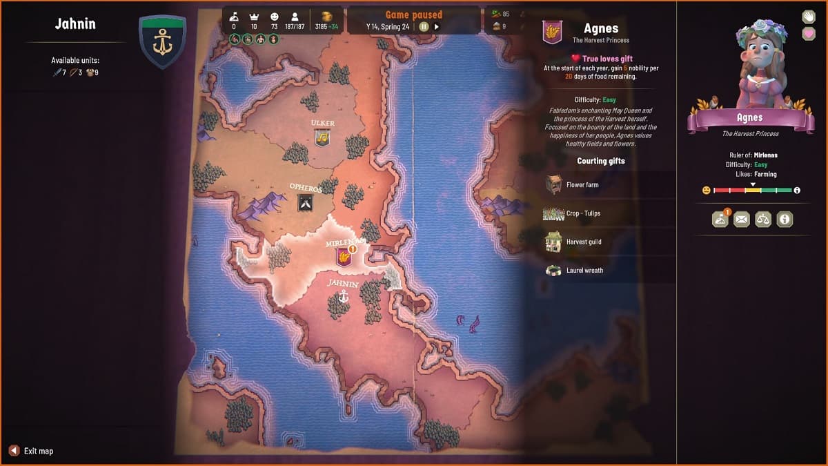 さて、王女のために。アグネスはロマンスにとって最も簡単な王女であり、彼女の好みの贈り物は野菜、それを求愛ギフトとして使用します。あなたが彼女をロマンスした後、あなたは彼女の本当の愛の贈り物を手に入れます。彼女はあなたに5を与えます貴族あなたが今年の初めに食べる20日ごとに。貴族は一貫して到達するのは難しいので、これはそれを後押しすることができます。
