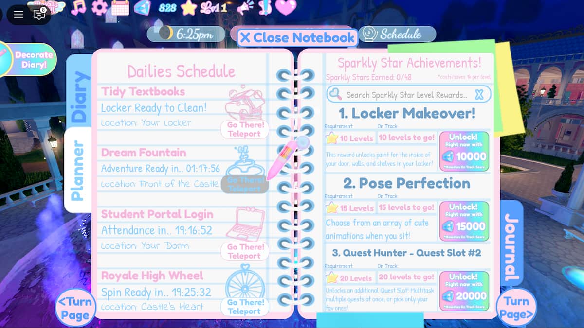 いつでもプランナーを開いて、次の願いに残りの時間を明らかにすることができます。 Dot eSportsによるスクリーンショット