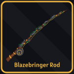 Blazebringer Rod強力なコンボで輝いています- ベースのパッシブ能力。後10連続の完璧なキャッチ、ロッドのバー火花で赤く光る、付与+10%運がありますすべてのプールと応募の機会にわたってエンバー(15%)そしてひび割れ(10%)突然変異。