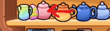 - すべてのティーポットがある棚を見て、卵が見えます!