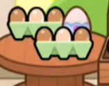 - 卵が位置する果物や野菜の隣の丸いテーブルを見てください。