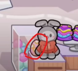- 秘密の卵は、ぬいぐるみのバニーの後ろに展示されています。