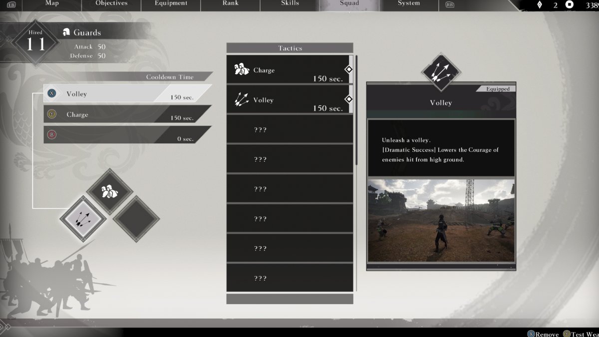 第2章でシシュイ門の戦いの後、戦術のロックを解除します。最初は、ボレーの戦術にのみアクセスできます。あなたは、あなたが見つけたときに新しい戦術を学び、主要な戦いの後にOverworldマップで彼らとやり取りすることにより、あなたの小隊にもっと多くの兵士を追加します。