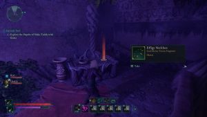 秘密の陰謀の偶像はにあります厳しい湿地北西エメラルドの階段で。プレイヤーは、プラトージャンクションビーコンの高速移動ポイントを獲得し、放棄された家に到着するまで北に移動できます。丘の頂上から家に近づくと、屋根の中に開口部があります。開口部からドロップダウンして、祭壇で作品を見つけます。