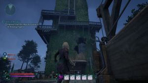 右側には、エリアの遠端にあなたを連れて行く傾向があり、構造と岩を通して成長する大きな木。水平の木を登り、岩だらけの道を作品に向けてください。