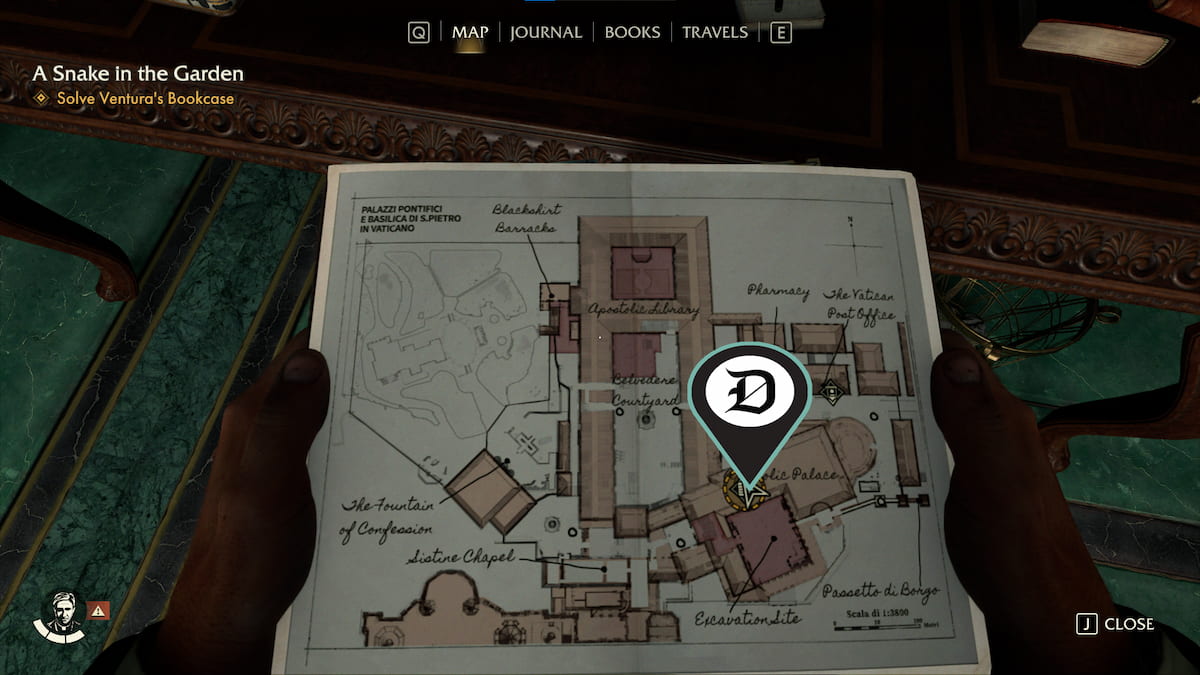 | 使徒宮殿 | 庭でヘビを完成させようとするとき、ベンチュラ神父のオフィスの中に薬のボトルがあります。 | ![]() |