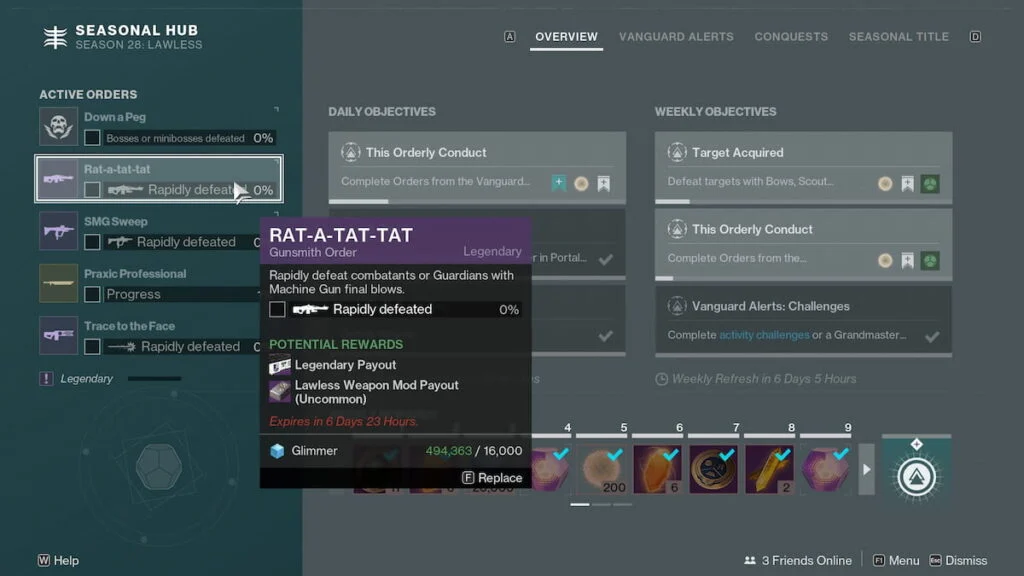 Destiny 2 Renegades で揮発性武器 MOD を入手するには、次のことを行う必要があります。レジェンドヴァンガードオーダーを完了する。ヴァンガード オーダーはシーズン ハブの新しいバージョンの報奨金であり、特定の武器タイプで戦闘員を倒すなどの単純な目的を持っています。