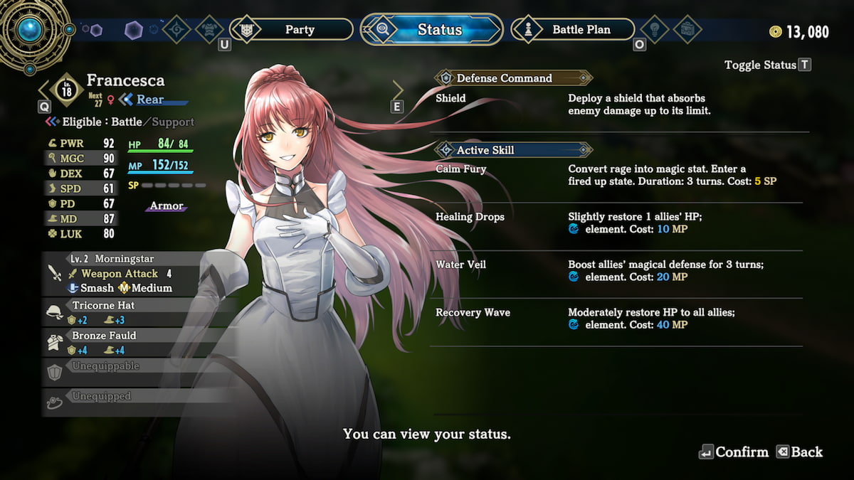 癒しの同盟国でExcelを募集し、そのようなより多くの防御を提供できるいくつかのヒーローフランチェスカ、選択、マリン、など。あなたはあなたがあなたの中に少なくとも1つを持っていることを確認する必要がありますパーティーの形成常に。 [ステータス]タブの下にメニューにスキルが表示されます。フランチェスカは、すべての同盟国を同時に癒すことができるので、私のお気に入りのヒーラーの1人です。ただし、戦いを通して癒しを続けるために、MPが高く留まることを確認する必要があります。