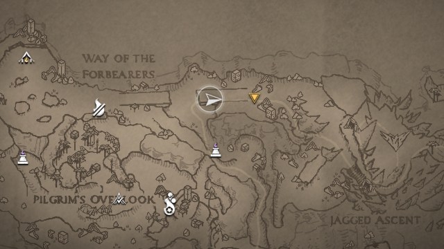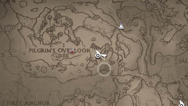 胸に不規則なxがあります巡礼者の見渡しのバンディットキャンプのボスエリアワンダラーの休息で。このキャンプは克服するのが特に難しくないので、手に入れたい場合は北に向かってください。