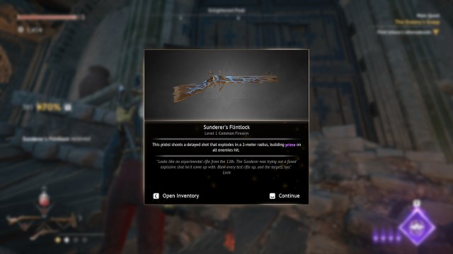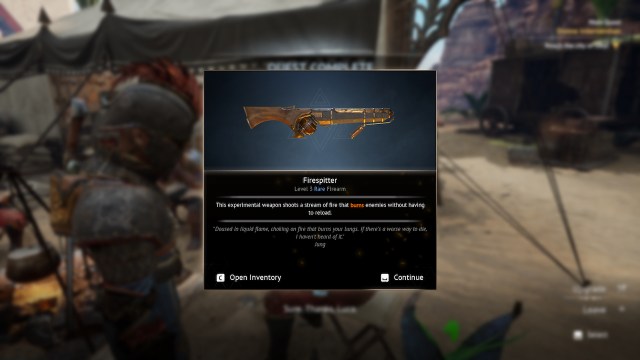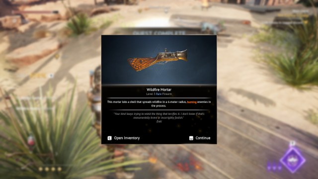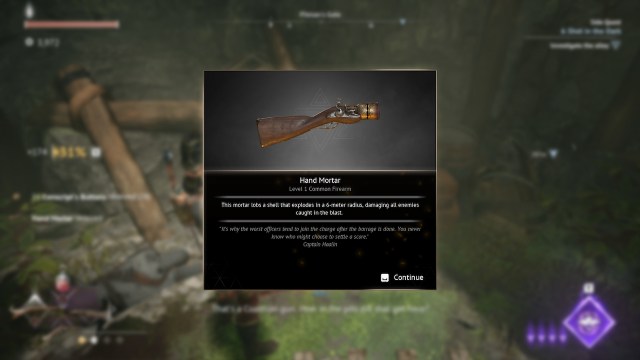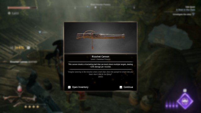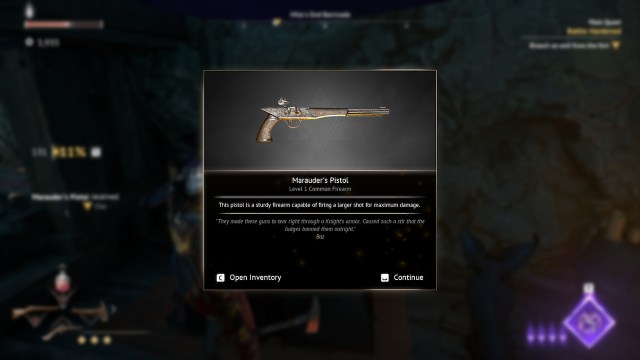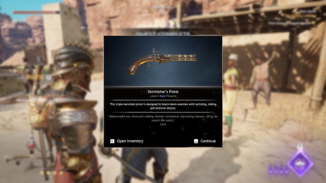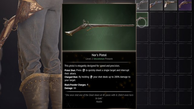あなたは倒した後、Skirmisher's Pistolを受け取りますサイドクエスト「義務が電話するとき「 ワンダラーの休息で。このクエストはゴートフットゴージで始めることができ、死者の波から民間人を守ることを伴います。