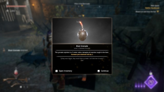 次の項目は、探索中またはクエスト報酬からチェストから受け取られます。サイドクエストの場合、それらはあなたのようにあなたが利用できるようになりますゲームと無料の集落を進めます。したがって、サイドクエストを開始するために利用できる噂がない場合は、 より多くの集落を解放してください。 Sapper Questsは、ゲームを進めるにつれて、特定の設立されたキャンプ場で利用可能になります。