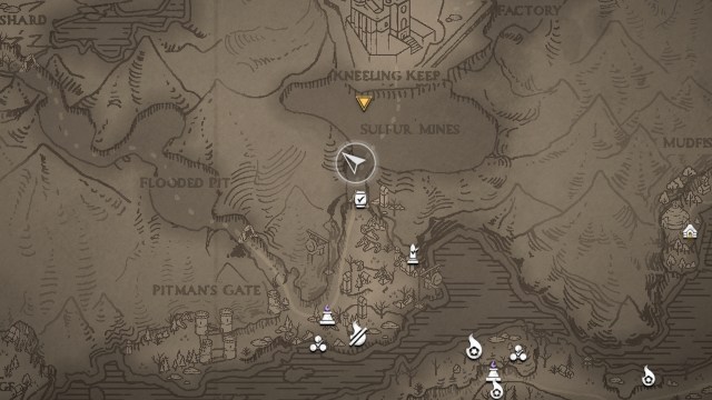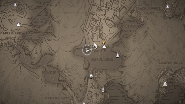 この武器は、にもあります硫黄鉱山3つのピークで。最終的なロードストーンの前に、壁を通る洞窟で、右折して、通常、左を取るために左を取って、タフな両頭のアンデッドの敵を見下ろす露頭に足を踏み入れます。