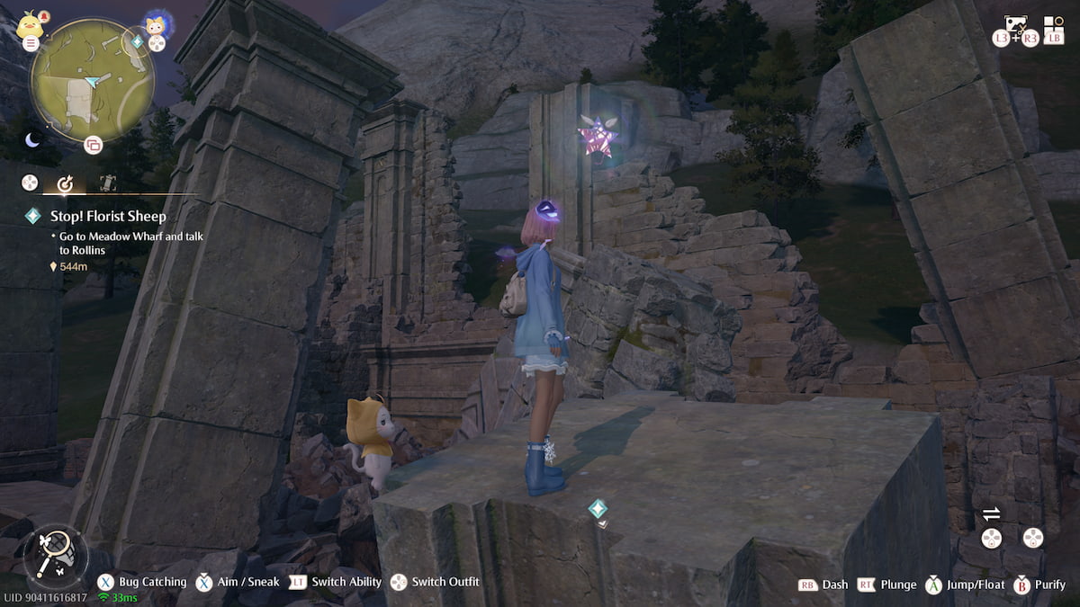 このWhimstarは、紫とピンクの糸の小さなボールとして現れます。あなたがそれに近づくと、それは光の脈動円を送ります。その光の円の中には、星のアイコン、写真、バッジ、サイン、または星の形をしたものを見つけるでしょう。星のアイコンにアクセスして、「調査」を押して、whimstarをアクティブにしてください!