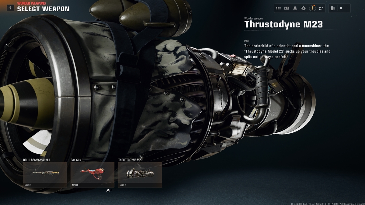 Thrustodyne M23は、Liberty Falls Mapでのみ取得できるもう1つの不思議な武器です。この象徴的な武器には、正面にジェットエンジンがあり、ワイヤーのスプール、ゲージ、オートバイのハンドブレーキがあります。