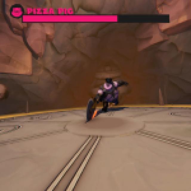 最初の段階では、ピザ豚があなたを真正面から攻撃するために使用する巨大なピザカッターを振り回します。彼は目の前で武器を粉砕するか、回転攻撃またはまっすぐな突き刺し攻撃を行います。