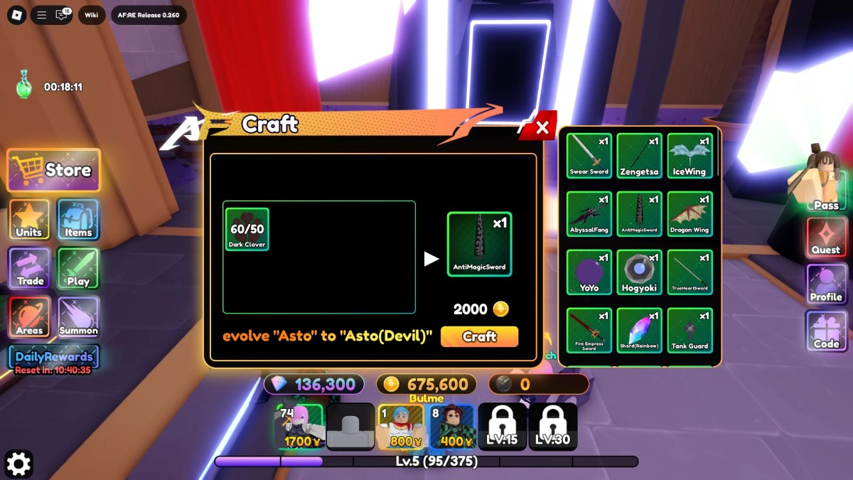 Evolveエリアの隣にあるCraft NPCでは、アニメファンタジーのほぼすべてのユニットエボリューション素材をクラフトできます:Re。
