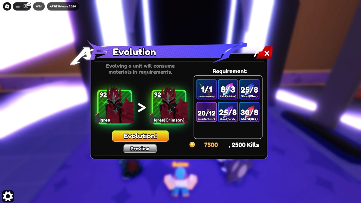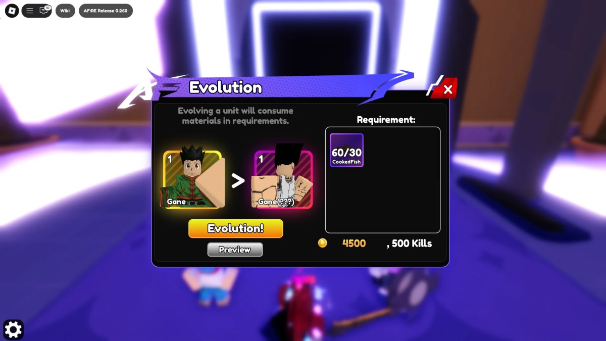 ユニットを進化させるには、いくつかの金、そのユニットの特定の数のテイクダウン、およびその進化に必要な一連の材料が必要です。