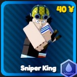 ![]() スナイパーキング | 珍しい:レア 要素:アクア ティア(全体): d ティア(イースターイベント):d 最高の特徴:再ロールしないでください | +非常に長い範囲 - ゲーム内のすべてのユニットの中で最悪のDPS - アニメレンジャーズxの最悪のユニットの1つ |
