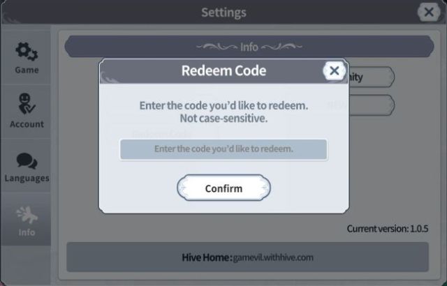 - コードを入力します、および選択します入力。報酬はすぐにゲーム内のメールボックスに届きます。