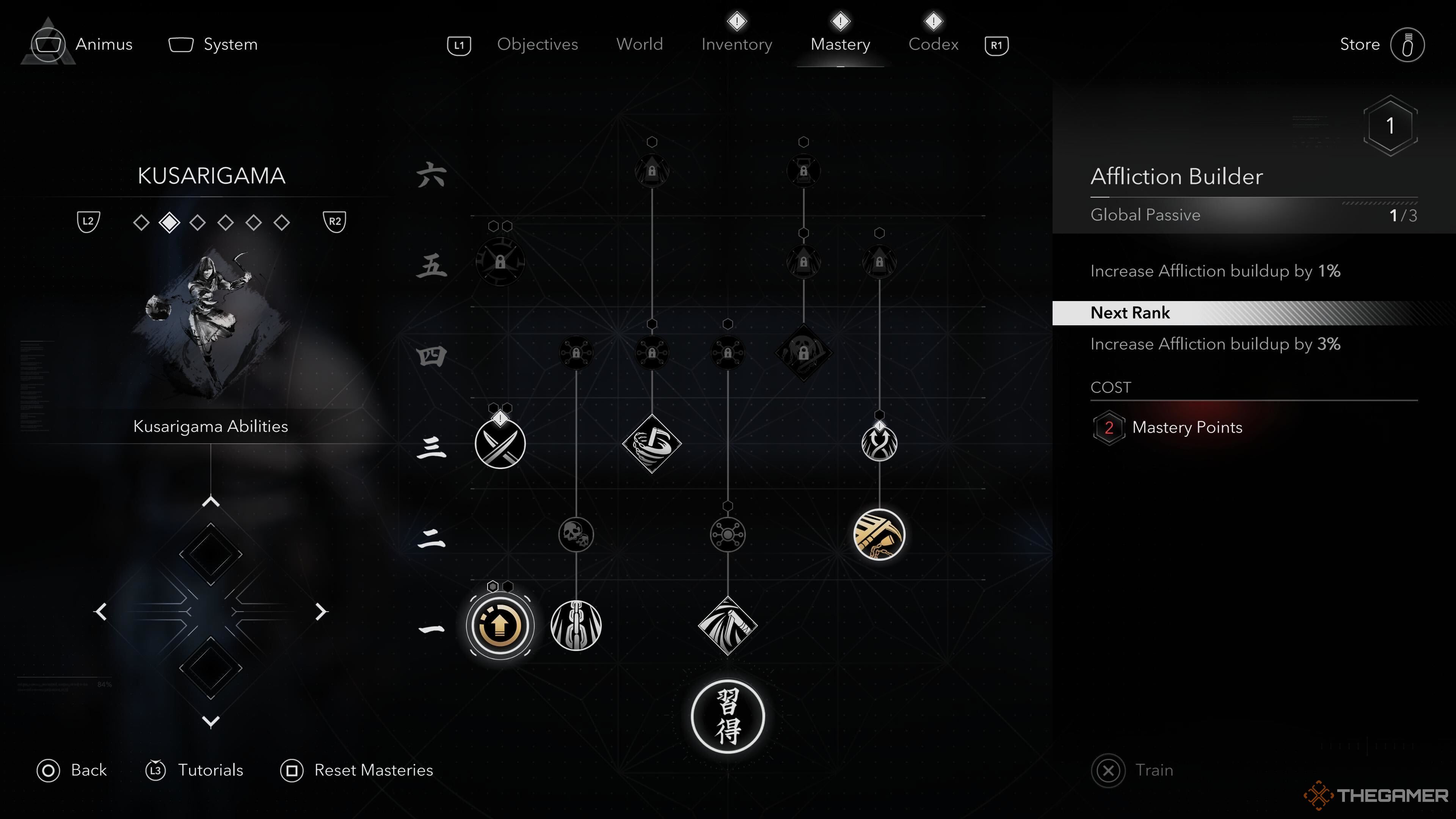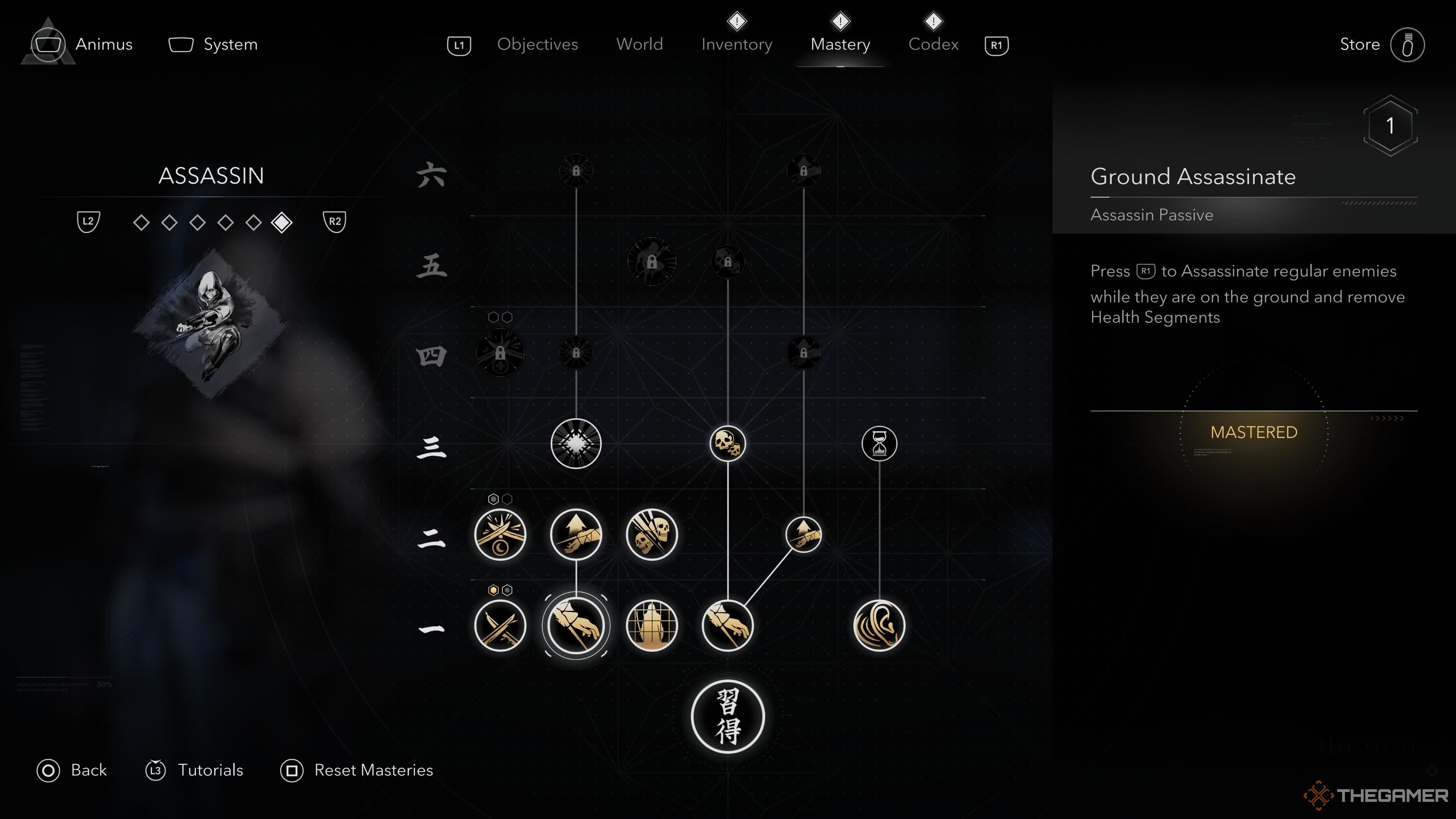 で暗殺者の信条の影、各キャラクターのスキルは、テーマに囲まれた木に分割されます。ここには、各キャラクターが操作できる武器と動き方に焦点を当てた習得スキルと呼ばれるスキルのセットがあります。