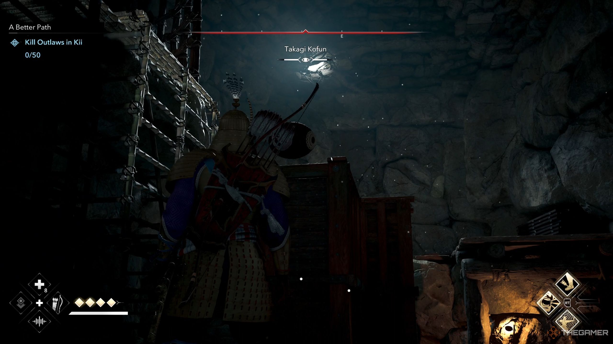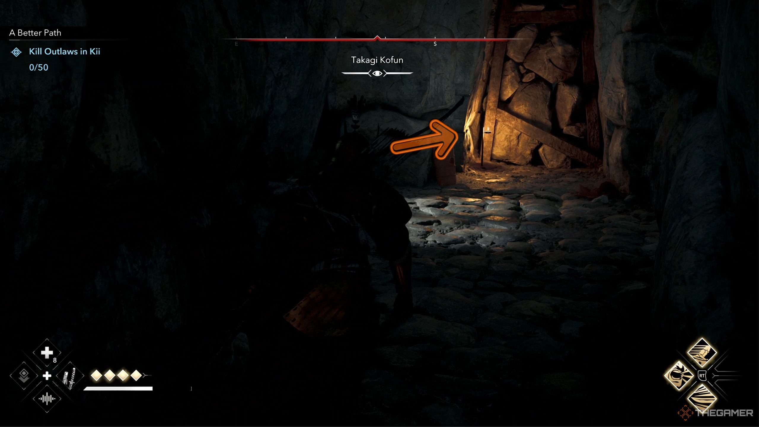 Yasukeと一緒に砦に入り、すべての敵を倒した後、Kofunの入り口近くの爆発的な樽の1つを拾い上げて壊れやすい壁に投げてください。その後、矢で樽を爆発させ、コフンに入ることができます。