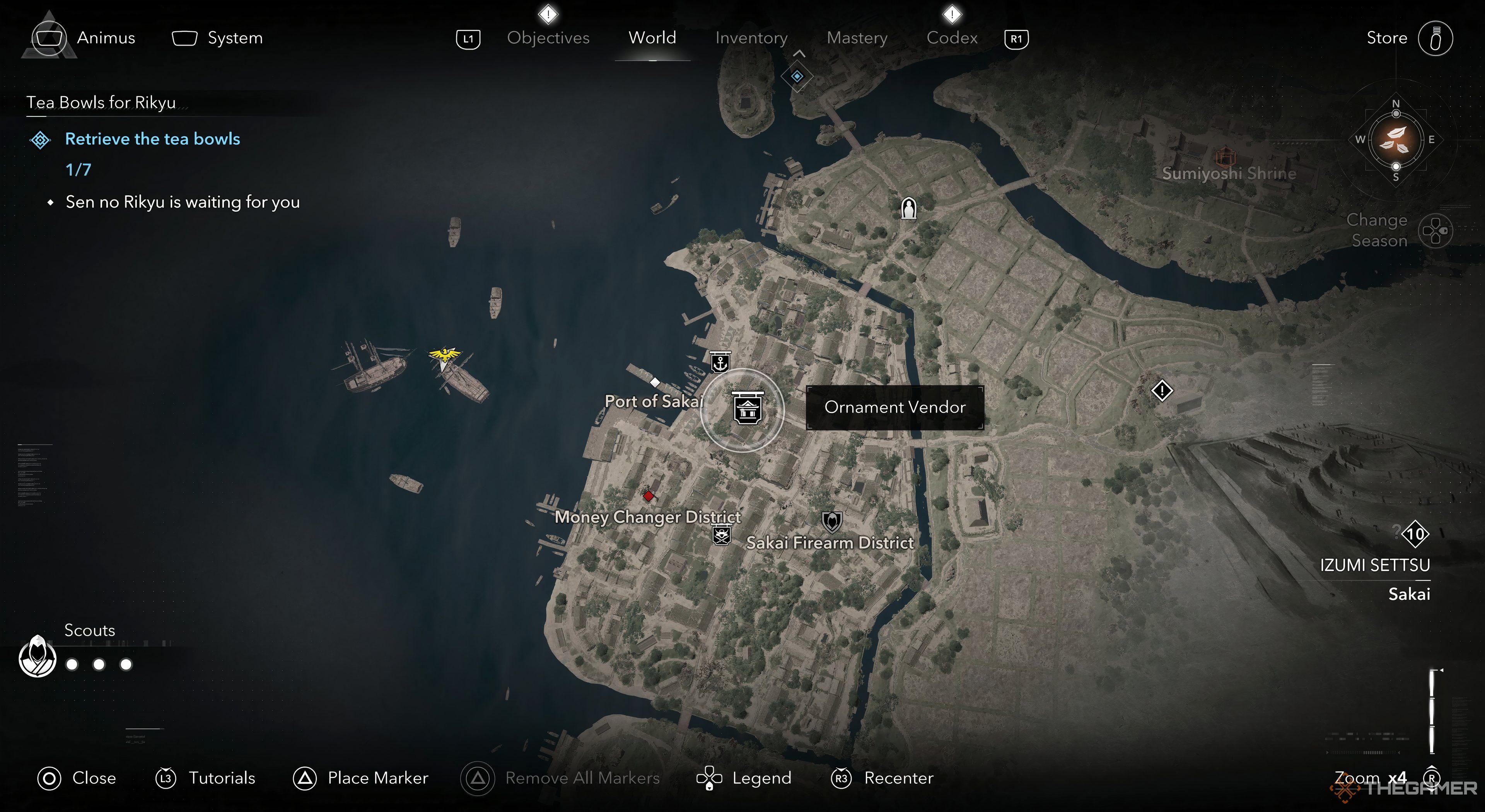 このミッションを行ったら、できますSen no rikyuと話をするために戻ってください(ティーセンタークエストを開始したNPC)。しかし、彼はそうではありませんあなたが彼に初めて会った同じ場所で、それは坂でした。代わりに、彼は入るでしょう山下、jusにありますサカイと大阪の北西、居居海岸を越えて。