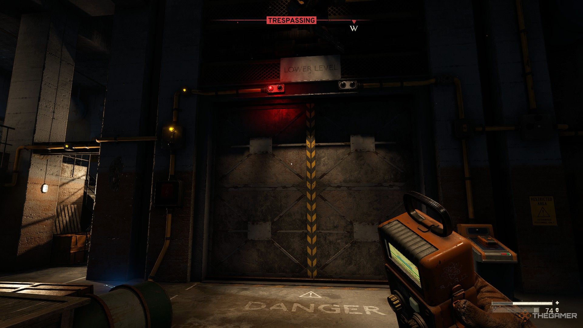 初め、制御室の下のスイッチルームに行きます。ドアの向かいのボックスにある信号リダイレクターを使用して、パネルに電源を入れ、次に使用します。レバーを引っ張りますエリアを見下ろす。これはドアに向かって電流を送りますが、床の水を電化します、致命的な危険を起こします。