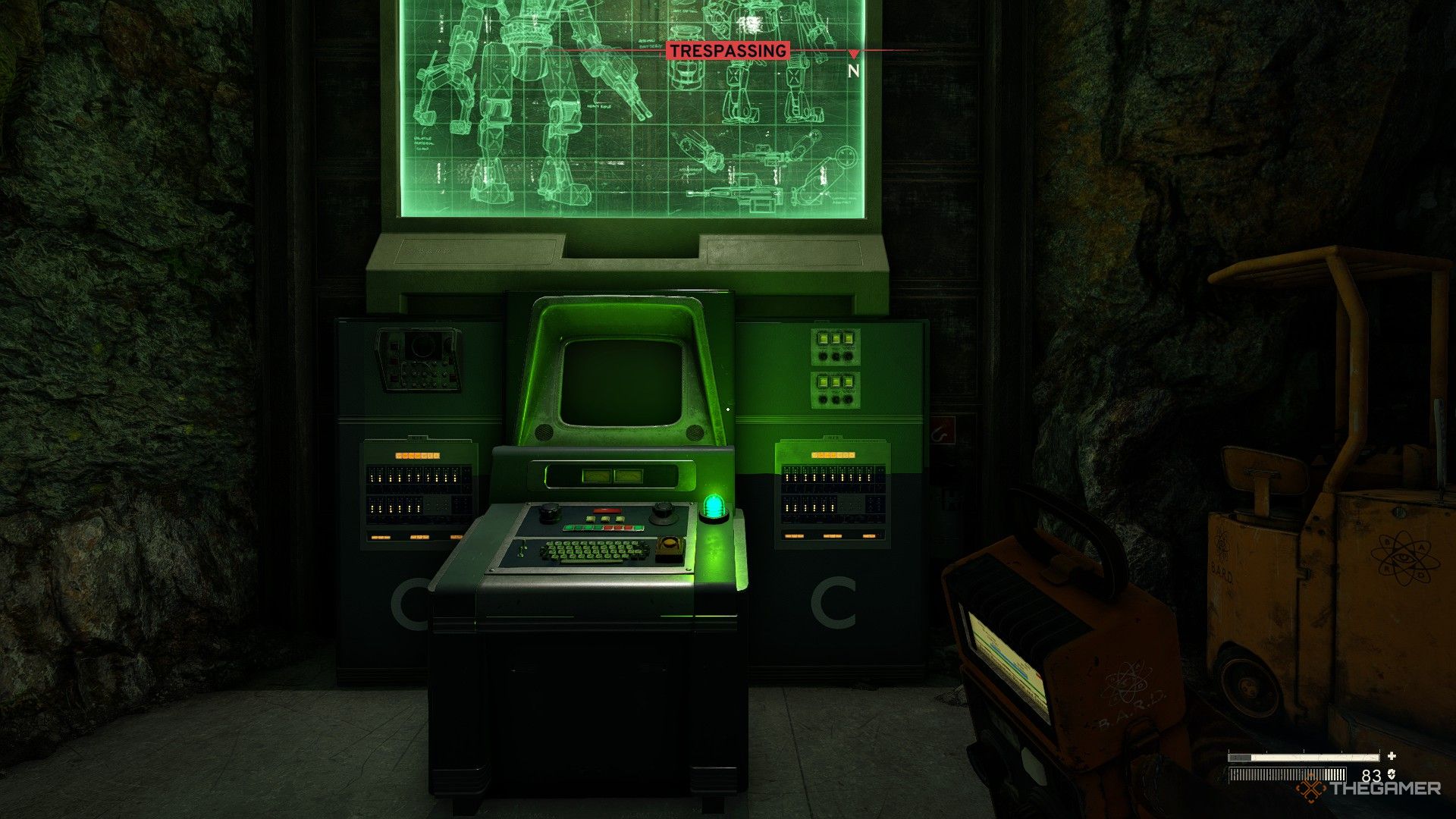 コントロールルームには、トレーニング刺激を含むいくつかの備品があり、ボタンをアクティブにしますまだ見つけていない場合、信号リダイレクターの居場所のヒントを提供します。また、下の部屋の電源をオンにします。砲塔をアクティブにし、機関銃ロボットを展開します。