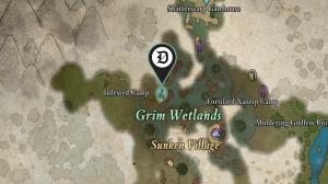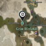 グリム湿地党のキャンプの西と、沈んだ村の近くにある高原ジャンクションビーコンの北には、片付けられるキャンプがあります。この地域のすべての敵が敗北したら、東側の崖の端をたどって壊れた橋に到達します。