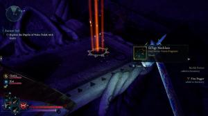 冷凍プラットフォームが作成されたら、ジャンプして大きな丸太に登り、最後まで続きます。次に、右折してロックチェストを見つけます。3つのロックピックを開く必要があります。彫像のネックレスの隣に細かい短剣があるテーブルの前に。