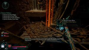 橋を飛び越えて、閉じ込められた建物、放棄された教会の屋根にアクセスし、1階に到達します。秘密の陰謀の偶像は、メインドアの反対側の神社から集める準備ができています。