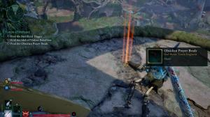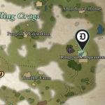 デレムガンのグレードの右側を通るパスで、右側のロックフェイスにつながる倒れた木に登り、左に向かいます。大きな岩が突き出ており、壁の平らな部分の真向かいに突き出ています。死体から黒曜石の祈りのビーズを横切ってつかみます。