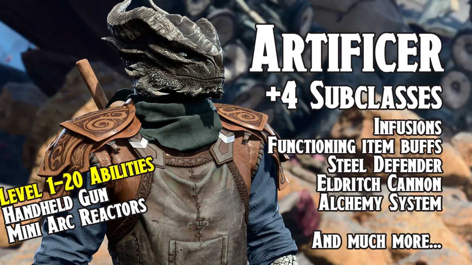 このArtificer Modのおかげで、このクラスはBaldurのゲートで、4つの主要なサブクラスを体験できます。また、ロック解除レベルカーブを使用してキャラクターをレベル20に到達させることもできます。ああ、このmodには拳銃が付属しているため、砲兵師は本当に輝くことができます。